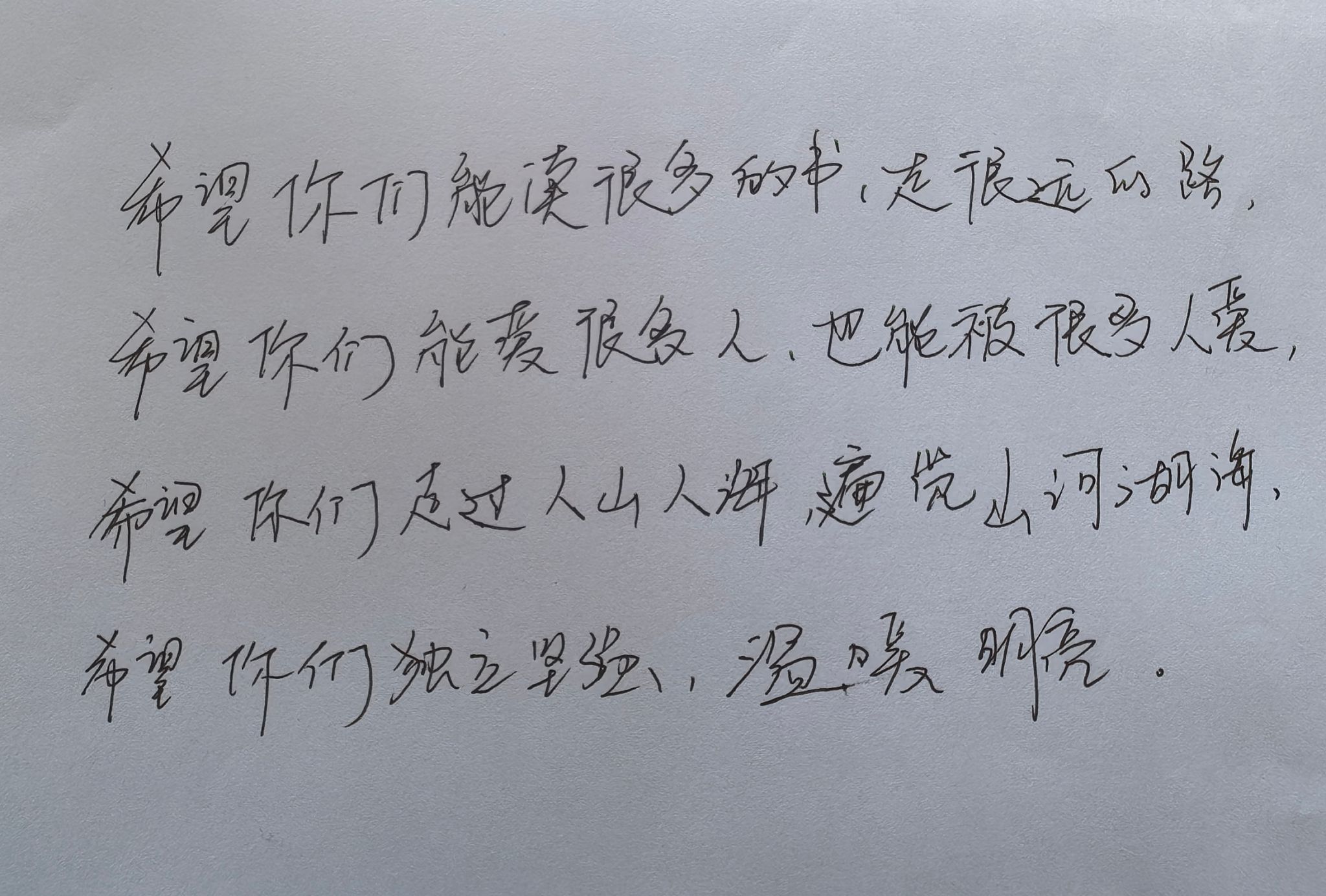 互动尾声,老师们与中心小学的孩子们亲切交流并合影留念。捐赠书籍的老师们在书中留下的一份份寄语将活动现场的温馨与感动推到了高潮,或坚定理想信念,或传递治学之道,或寄予成长期许,字里行间的温情与书香溢出纸面、沁人心脾。