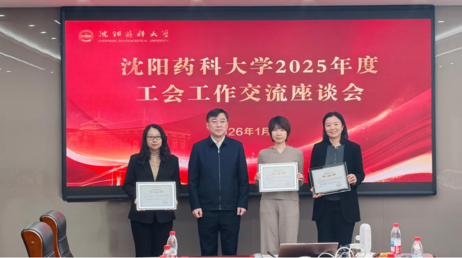 (关雪峰为“沈阳药科大学2025年工会精品活动”获奖单位颁奖) 王延风通报了2025年活力工会和2025年工会精品活动评选结果,并向获奖工会表示祝贺。同时围绕2026年学校高质量发展新形势新任务新要求,交流了工会工作初步设想,提出了持续深化思想政治引领、持续推动创新创造、持续丰富各级工会及教职工协会活动内涵、持续深化民主管理监督、持续用心用情做好各类服务、持续加强工会自身建设的工作思路,与会人员展开热烈交流。