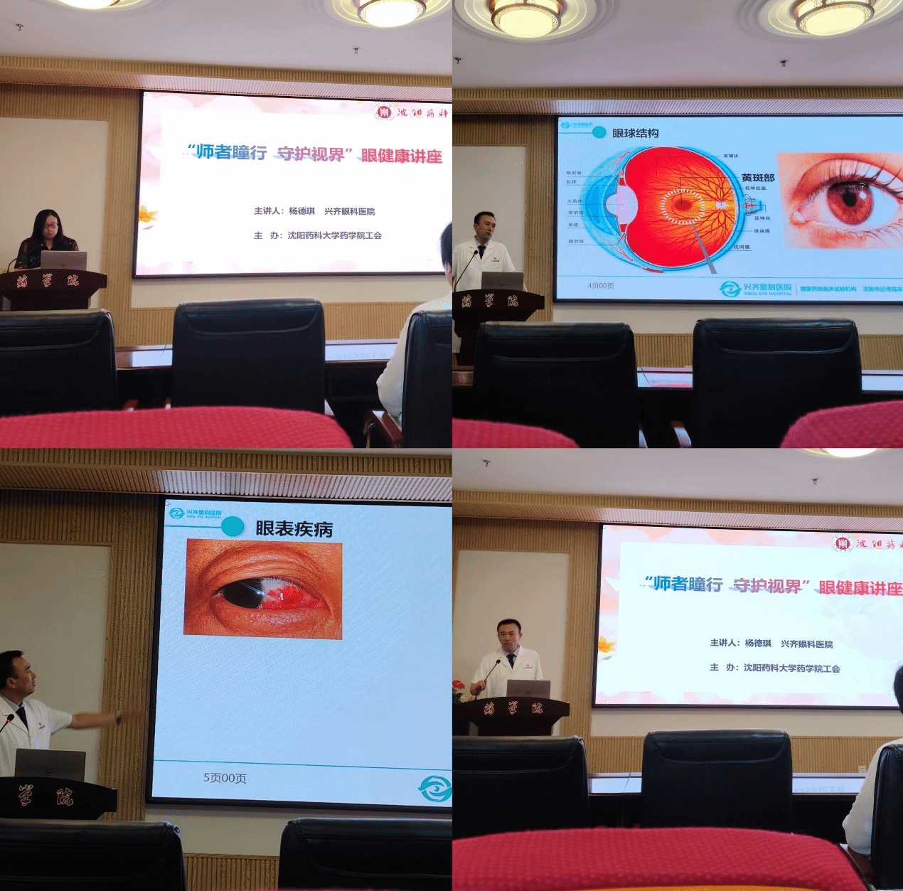 在第 41 个教师节来临之际,为关爱教师眼健康,9月8日,药学院工会精心举办 “师者瞳行 守护视界” 教师节眼健康主题活动,为教师们送上一份特殊的节日关怀。 药学院工会邀请了沈阳兴齐眼科医院杨德琪主任到学院开展眼睛健康知识讲座,何海冰主席主持会议。杨医生是眼科学硕士、白内障中心副主任,在白内障、青光眼、角膜病诊断治疗以及微小切口超声乳化治疗白内障、儿童青少年近视防控等方面经验丰富。讲座中,杨医生围绕常见眼病预防与治疗、正确用眼方法、缓解眼疲劳妙招等内容展开讲解,为大家带来科学权威的眼健康指导。药学院党委书记李哲和教师们一同聆听讲座,学习眼健康知识。李书记也向教师们送上节日的祝福,感谢大家为学院教育事业的辛勤付出,同时叮嘱教师们要重视眼部健康。